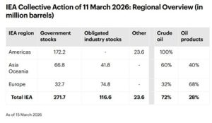 El petróleo de las reservas de emergencia de la AIE comenzará a llegar a los mercados mundiales próximamente, tras el anuncio del 11 de marzo de que los países miembros de la AIE pondrán a disposición del mercado 400 millones de barriles de petróleo en respuesta a las perturbaciones derivadas del conflicto en Oriente Medio.