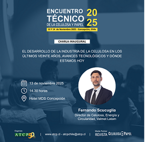 • En esta oportunidad, Fernando Scucuglia, director de Celulosa, Energía y Circularidad de Valmet Latinoamérica, tendrá a su cargo la charla inaugural de este jueves 13, titulada “El desarrollo de la industria de la celulosa en los últimos veinte años, avances tecnológicos y dónde estamos hoy”, programada para las 14:30 horas.