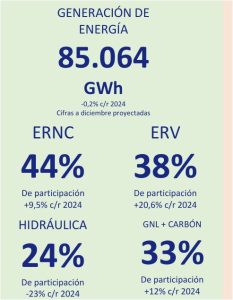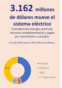 En materia de costos de operación del sistema, éstos se mantuvieron en torno a los 1.600 millones de dólares, cifra similar a la de 2024, pese a que este ejercicio está entre los cinco años más secos de los que se tenga registro.
