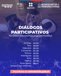 • MinCiencia y ANID inician diálogos participativos en diez regiones del país para proyectar el programa más emblemático del sistema científico nacional. En la región de Antofagasta, el encuentro se realizará este miércoles 15 de octubre en el Primer Tribunal Ambiental de Antofagasta.