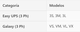 - UPS trifásicos Galaxy™, diseñados para aplicaciones críticas en industrias, hospitales, infraestructura TI y edificios comerciales. Estos sistemas ofrecen alta eficiencia energética, reducción de armónicos y respaldo inmediato ante cortes o variaciones severas de voltaje.
